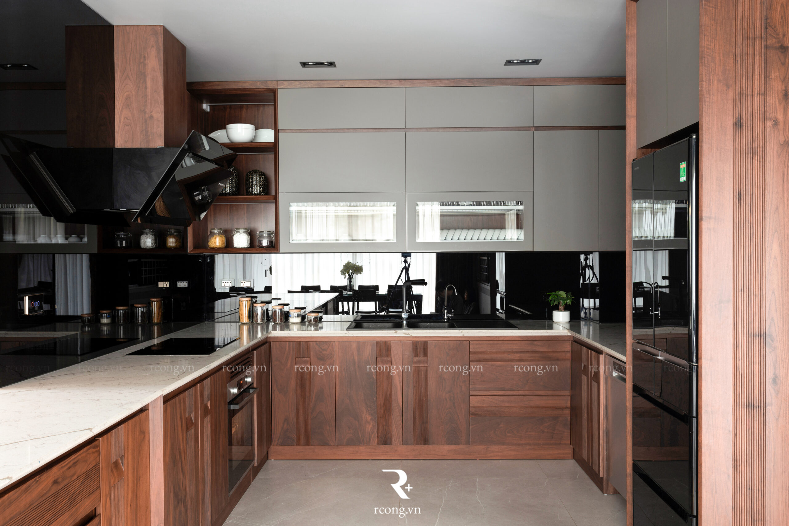 Căn biệt thự của gia đình chị Mai Khôi được hoàn thành vào giữa năm 2020 do Công ty R Cộng thiết kế thi công với nội thất gỗ óc chó. Chị tâm sự rằng: “Cả quá trình thi công nhà rất suôn sẻ, dù xa quê tới 20 năm, lạ lẫm với mọi thứ nhưng may mắn tôi và ông xã không phải thay đổi chỉnh sửa một hàng mục nào”.