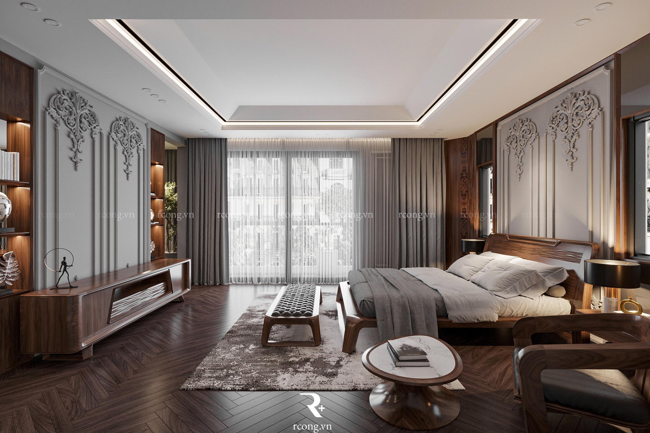 Mở đầu cho năm 2022, KTS R Cộng đã khai xuân bằng mẫu thiết kế nội thất biệt thự Vinhomes Ocean Park cho gia đình chị Vân. Thiết kế toàn bộ căn biệt thự, KTS đã kiến tạo không gian sang trọng, xứng tầm đẳng cấp giới thượng lưu. Đặc biệt là combo phòng ngủ gỗ óc chó tiện nghi, thoải mái và chuẩn gu thẩm mỹ vợ chồng gia chủ.