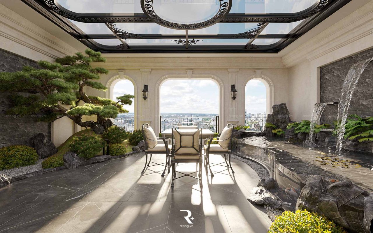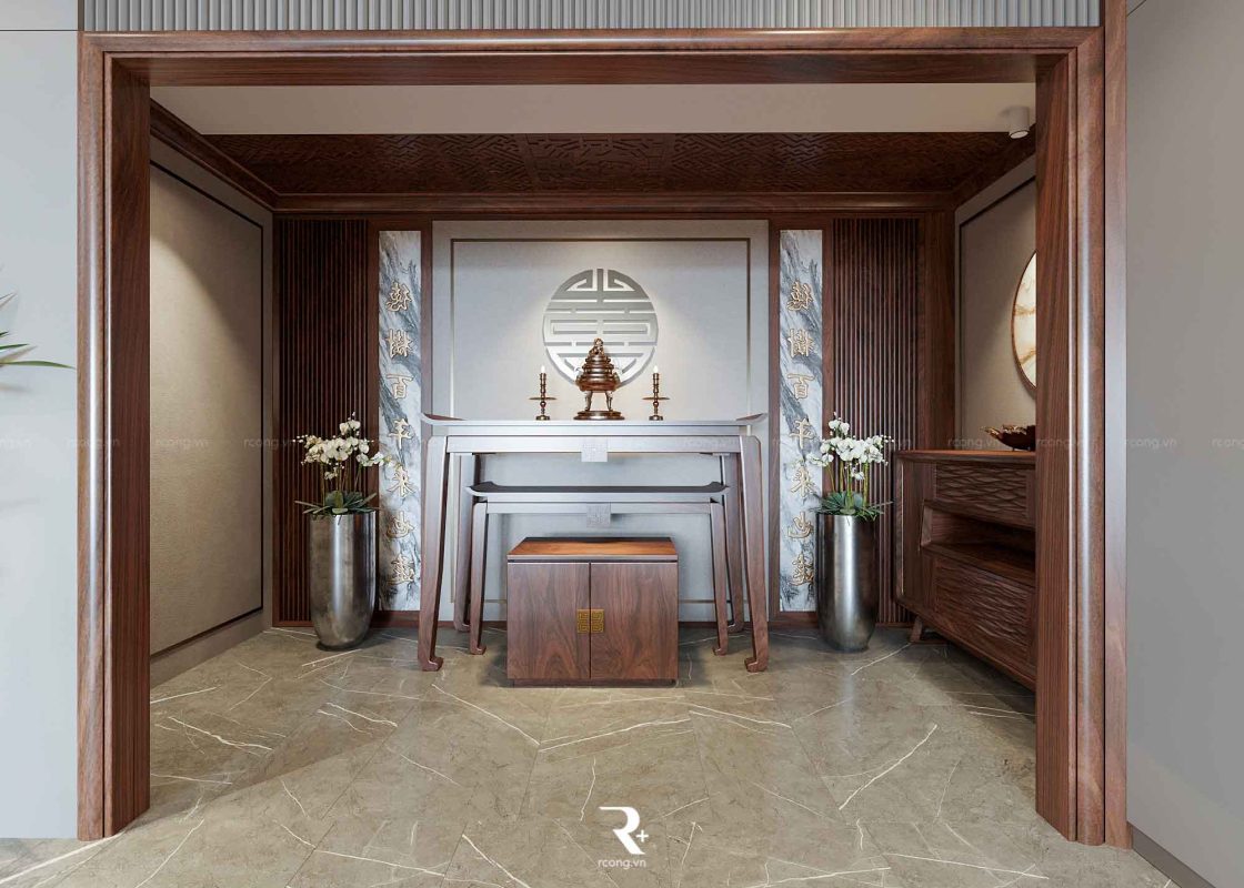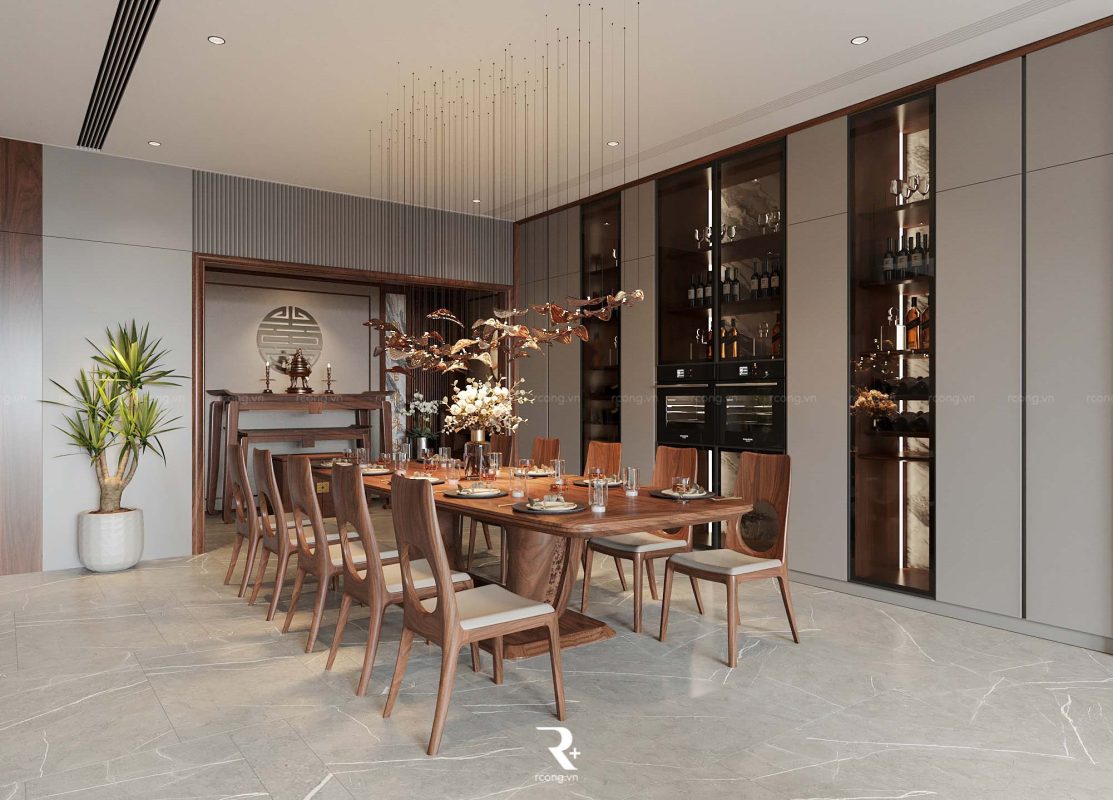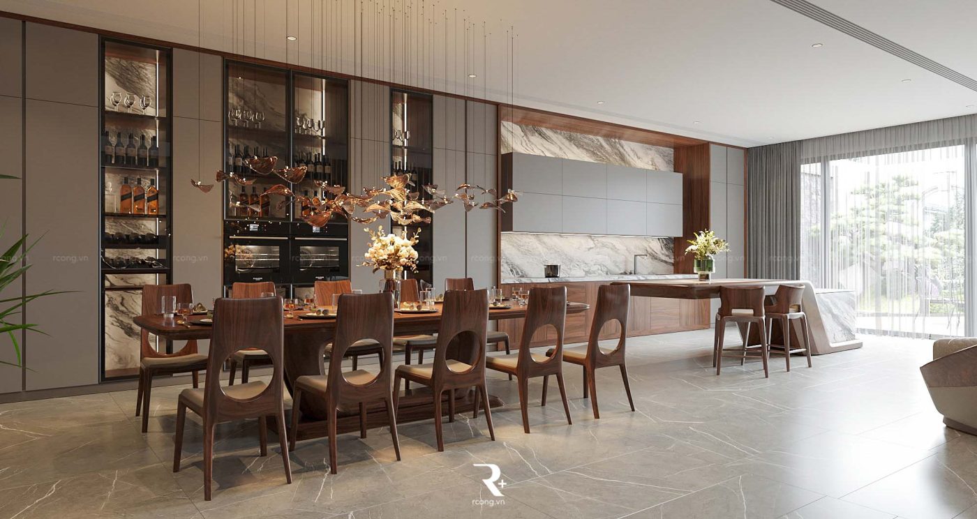 Nhưng R Cộng vẫn luôn ưu tiên sự liên thông, tính mở giữa các khoảng không gian. Ví dụ như không gian bếp được thiết kế liên thông với khu nấu ăn, phòng thờ và thiết kế mở ra sân vườn. R Cộng đã loại bỏ đi các vách ngăn, tận dụng được diện tích giúp không gian được trải dài và mở rộng hơn; đồng thời làm tăng sự kết nối giữa các thành viên trong gia đình.