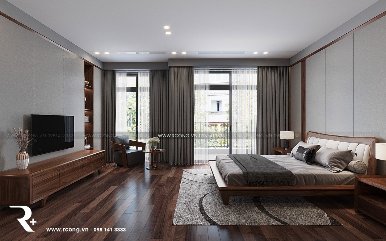 Căn biệt thự rộng lớn chỉ có đôi vợ chồng nên anh luôn muốn nhìn thấy chị mọi lúc mọi nơi. Chính vì thế mà không gian phòng ngủ cũng được thiết kế liên thông với phòng khách bếp bằng 1 cửa sổ lớn. Để khi cần riêng tư hay kết nối đều thuận tiện. Gia chủ cũng là người thích nội thất gỗ óc chó tự nhiên và Anh tìm đến R Cộng bởi niềm tin vào một đơn vị đã thiết kế nội thất gỗ óc chó uy tín hàng đầu hiện nay.
