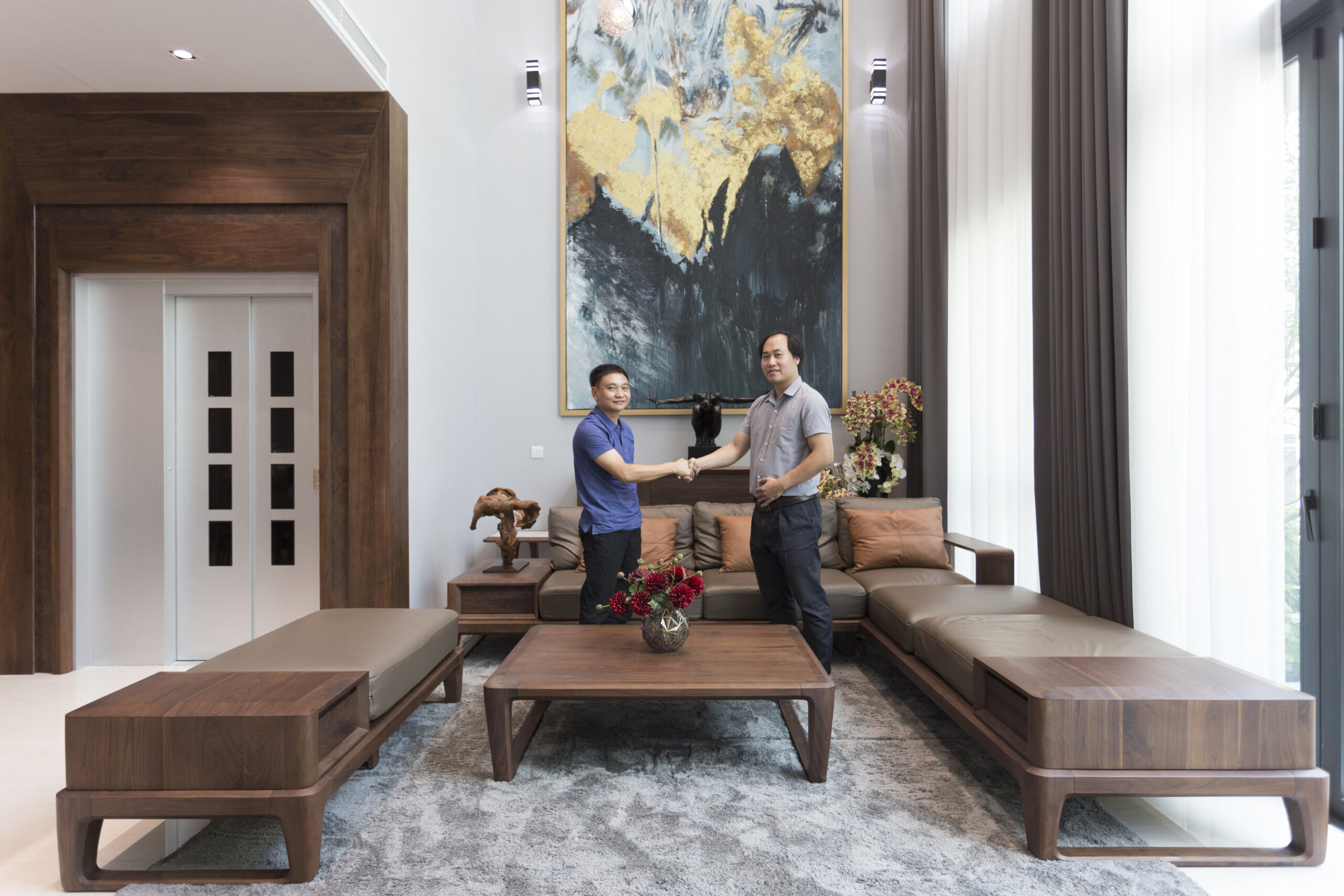 Mẫu nội thất phòng khách gỗ óc chó tại Thành Phố Vĩnh Yên