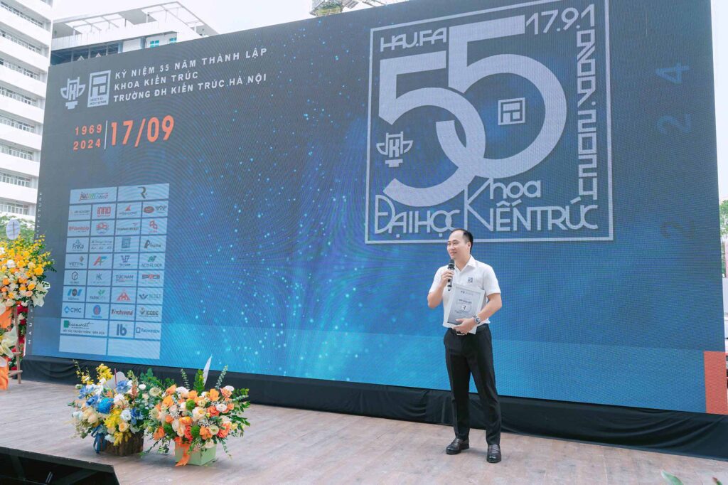 LÀ NHÀ TÀI TRỢ KIM CƯƠNG – R Cộng vinh dự được đồng hành cùng Lễ Kỷ niệm 55 năm thành lập Trường Đại học Kiến trúc Hà Nội và Khoa Kiến trúc. Đây không chỉ là sự kiện đặc biệt đối với trường và khoa, mà còn là cơ hội để R Cộng bày tỏ lòng biết ơn sâu sắc với ngôi trường đã đào tạo nhiều thế hệ kiến trúc sư, kỹ sư, nhà thiết kế tài năng, trong đó có những nhân sự chủ chốt của R Cộng và đặc biệt là CEO Hoàng Quỳnh.