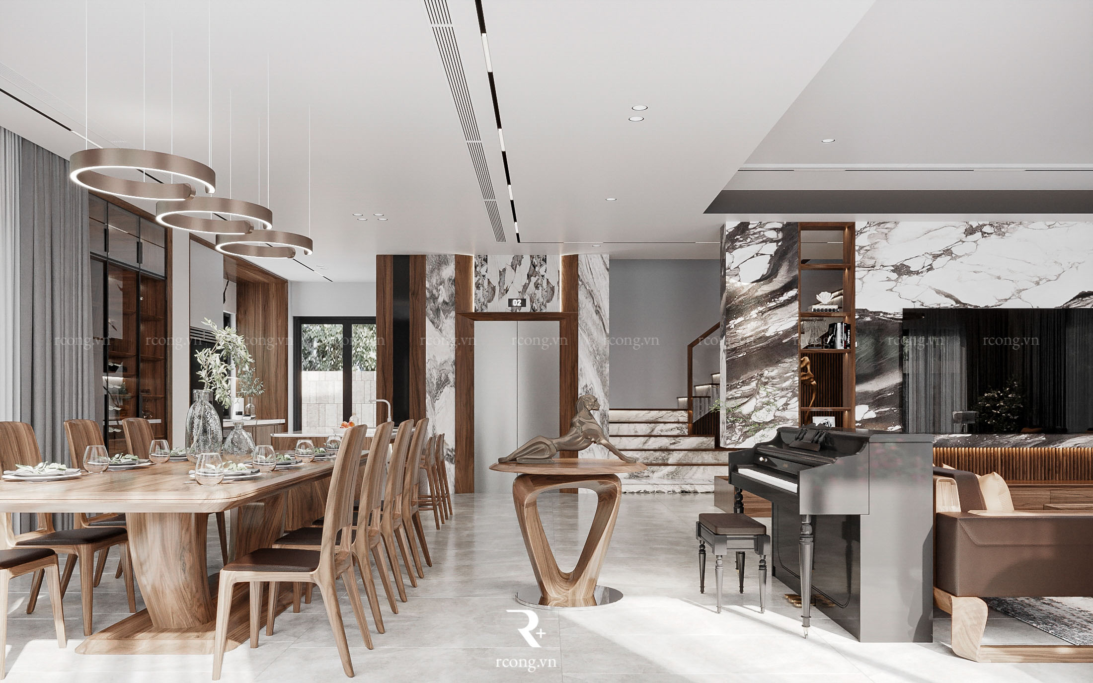 Dự án này được Nội thất R Cộng sáng tạo với khoảng không gian nội thất phong cách hiện đại. Mong muốn chủ đầu tư là hòa hợp phối không gian nội thất gỗ óc chó và ngoại thất tạo thành màu sắc hoàn chỉnh. Không gian công trình phải tạo cảm hứng nổi bật bên ngoài nhưng vẫn phải đầy thanh lịch và phóng khoáng.