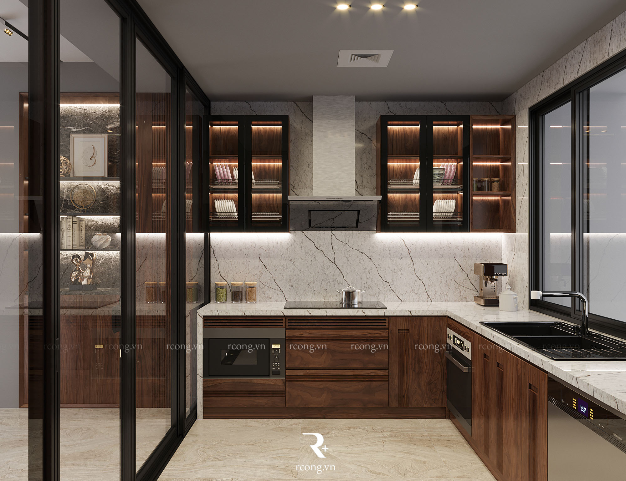 Tủ bếp gỗ óc chó hiện đại – xu hướng nội thất bếp 2022