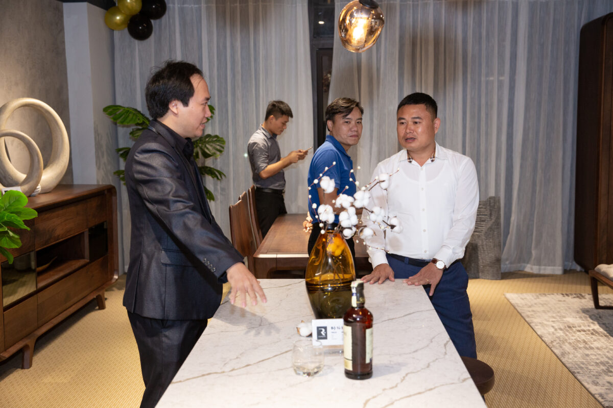 Sau lễ khai trương, các vị đại biểu, khách mời, đối tác, khách hàng được ban Lãnh đạo R Cộng mời đi tham quan các không gian trưng bày nội thất gỗ óc chó.